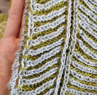 I eventually finished the annoyingly terribly badly-written pattern project from the 8th time I cast on (I think). There were several times when I had to unknit up to 6 rows to fix a mistake because I couldn't figure out how to do this using a crochet hook for individual columns of stitches, and I had to do that one stitch at a time with both ends of the needle rather than taking the needle out, ripping stitches, and then threading it back in, because picking the stitches back up correctly like that was too hard.