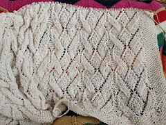 It isn't warm enough yet to benefit from a cotton afghan (as a substitute for a duvet in the hot part of summer), but it's getting warmer. At this rate, though, it's possible I might manage to finish it in time to get some use out of it this year.